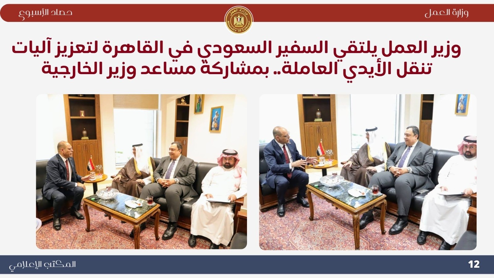 اجتماع وزيري الخارجية والعمل لإنشاء قاعدة بيانات للعمالة المصرية بالخارج..حيث ناقش الوزيران بدر عبد العاطي ومحمد جبران بعض الملفات التي تخص العمالة المصرية بالخارج .