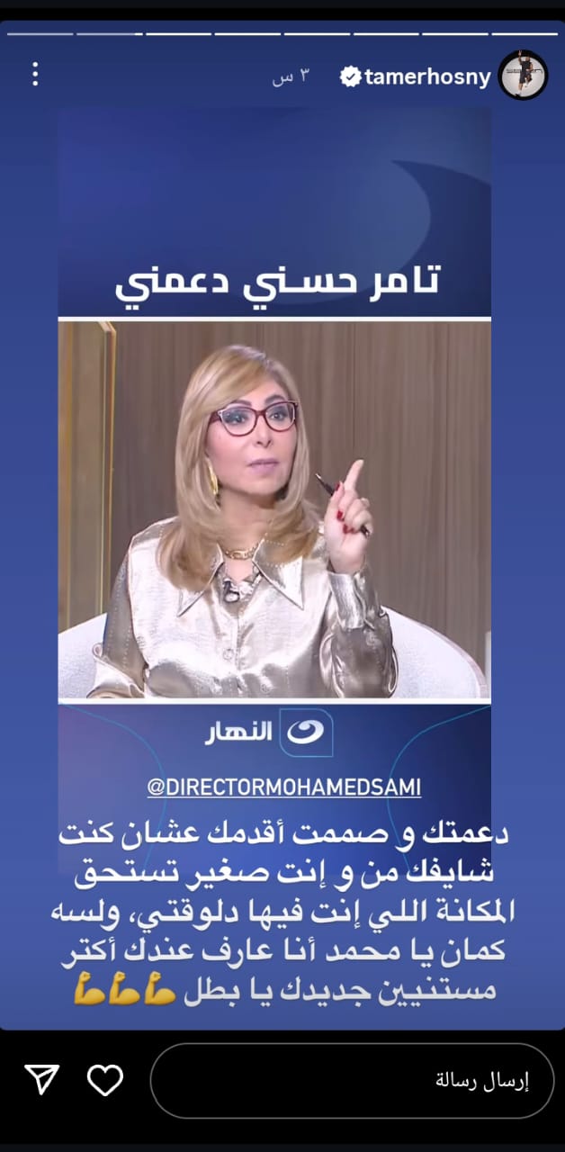 تامر حسني لمحمد سامي: "دعمتك وصممت أقدمك عشان كنت شايفك تستحق"