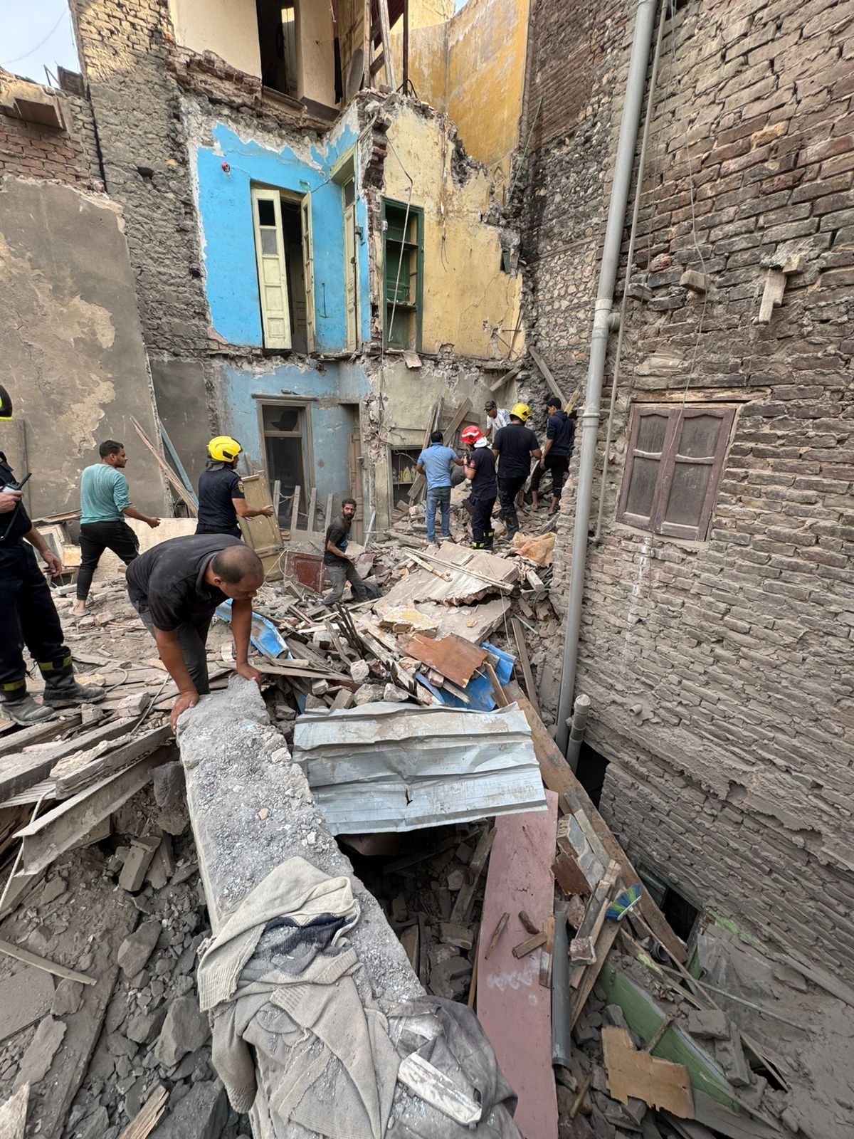 إنقاذ مسن والبحث عن صغيرة في حادث انهيار جزئي لعقار بروض الفرج|صور
