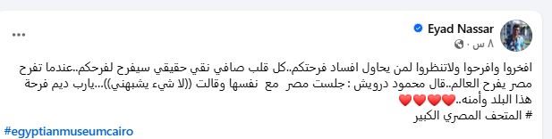 شارك الفنان إياد نصار المتابعين والجمهور عبر مواقع التواصل الاجتماعي احتفالية المتحف المصري الكبير.