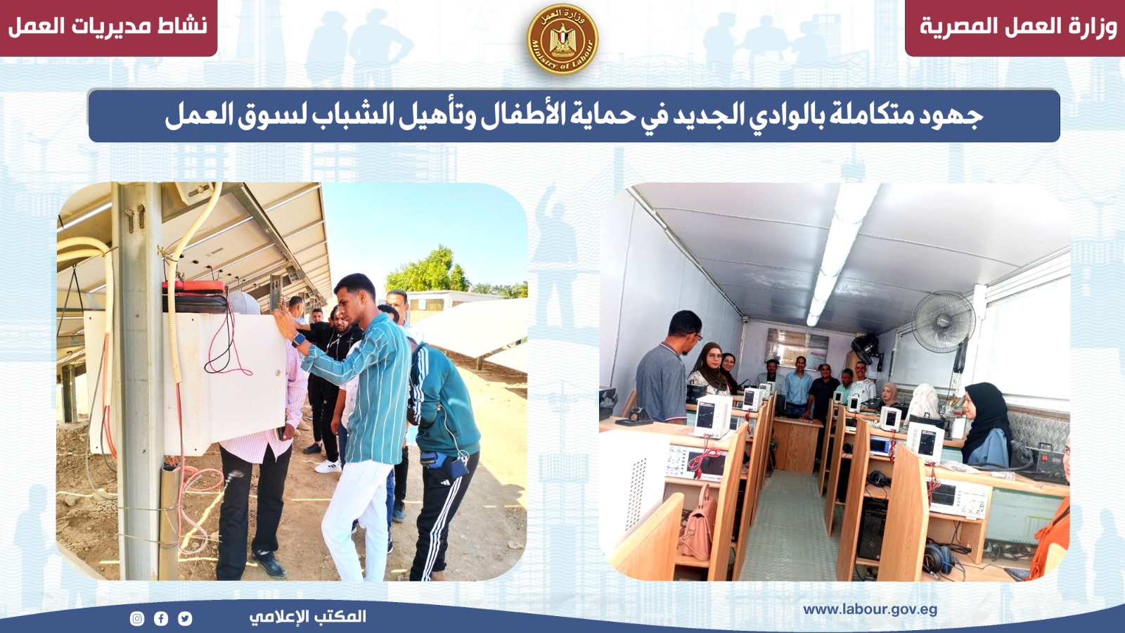 وقال أسامة إبراهيم مدير عام مديرية العمل بالوادي الجديد إن هذه الجهود تأتي تنفيذًا لرؤية الوزارة في دعم منظومة التفتيش لحماية الطفل وتطبيق القانون، بالتوازي مع تفعيل دور التدريب المهني وربطه باحتياجات سوق العمل من خلال برامج تدريبية متخصصة في مختلف مراكز المحافظة، مؤكداَ أن المديرية مستمرة في تكثيف حملات التوعية والتفتيش والتدريب حرصًا من وزارة العمل على توفير بيئة عمل آمنة ومنظمة، وتمكين الشباب من اكتساب مهارات تسهم في تحسين فرصهم في سوق العمل ودعم المشروعات الناشئة داخل المحافظة.