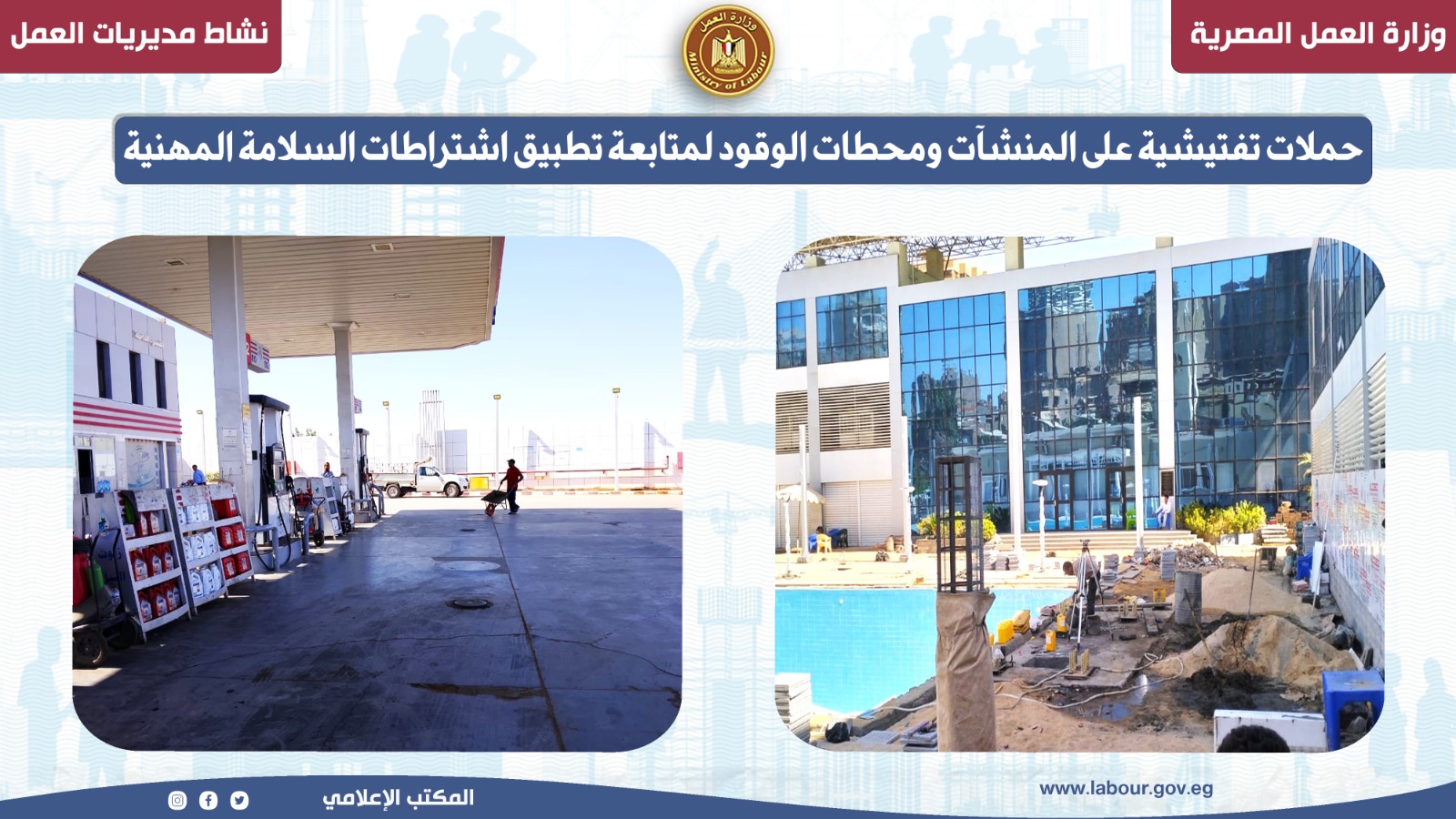 مديريات العمل بالمحافظات ..حملات تفتيش مكثفة علي المنشئات ومحطات الوقود