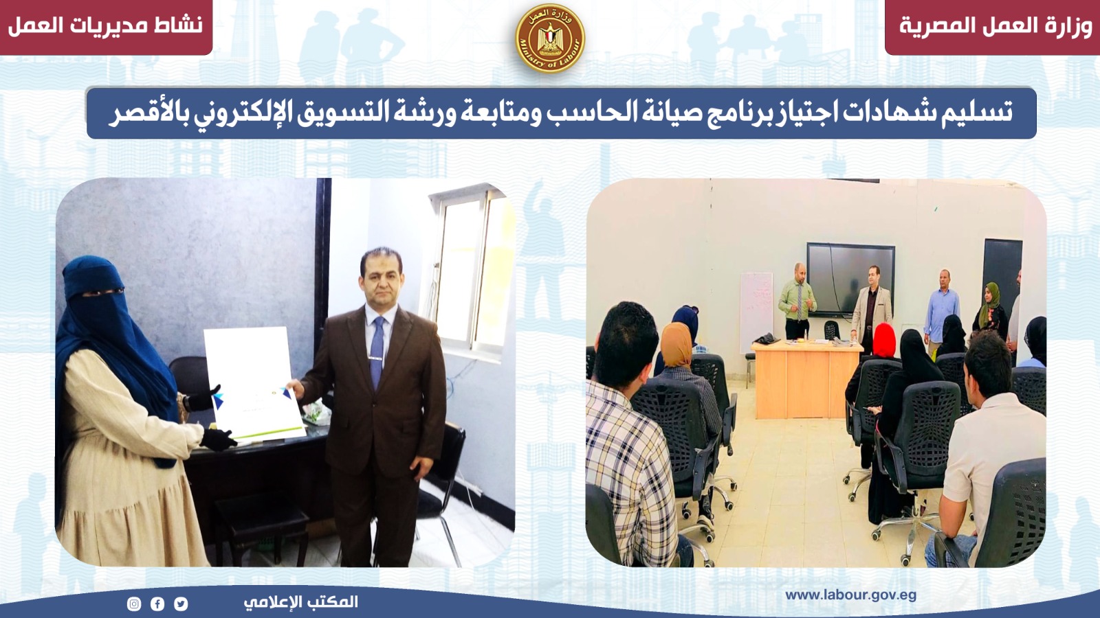 7-تسليم شهادات اجتياز برنامج صيانة الحاسب ومتابعة ورشة التسويق الإلكتروني بالأقصر