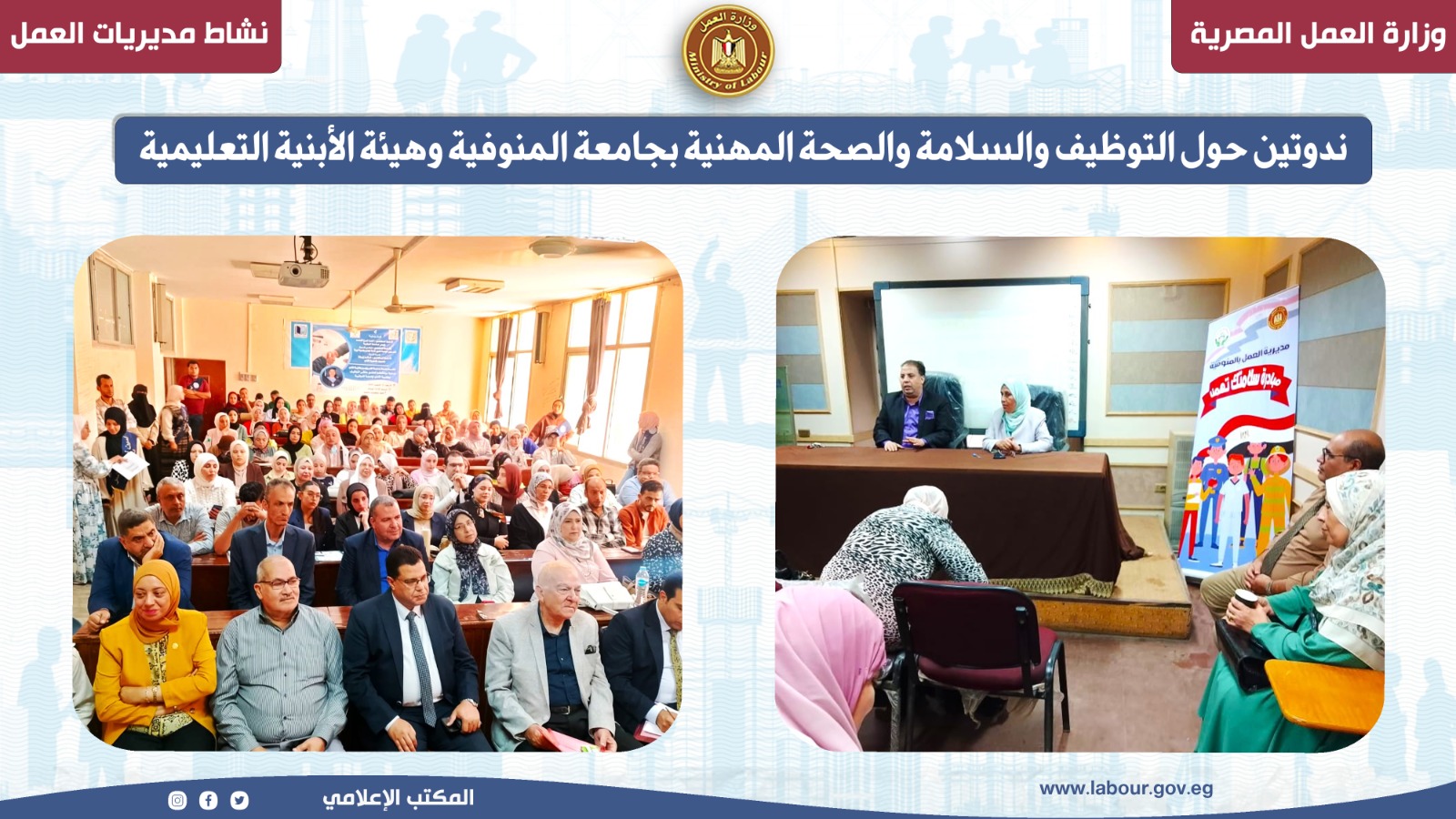 4-ندوتين حول التوظيف والسلامة والصحة المهنية بجامعة المنوفية وهيئة الأبنية التعليمية