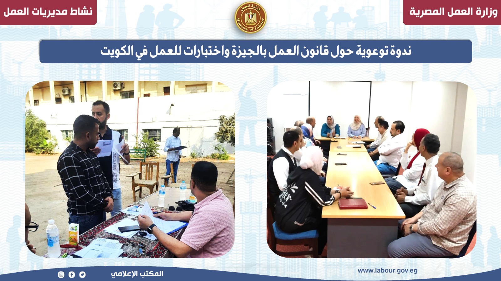 2-ندوة توعوية حول قانون العمل بالجيزة واختبارات للعمل في الكويت