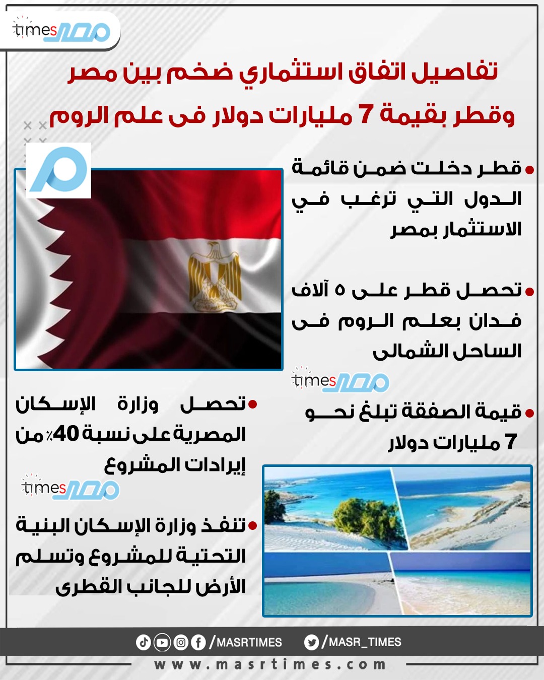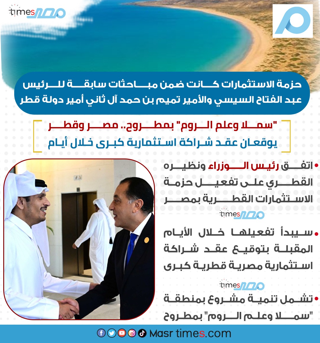 علم الروم.. تفاصيل اتفاق استثماري ضخم بين مصر وقطر بقيمة 7 مليارات دولار
