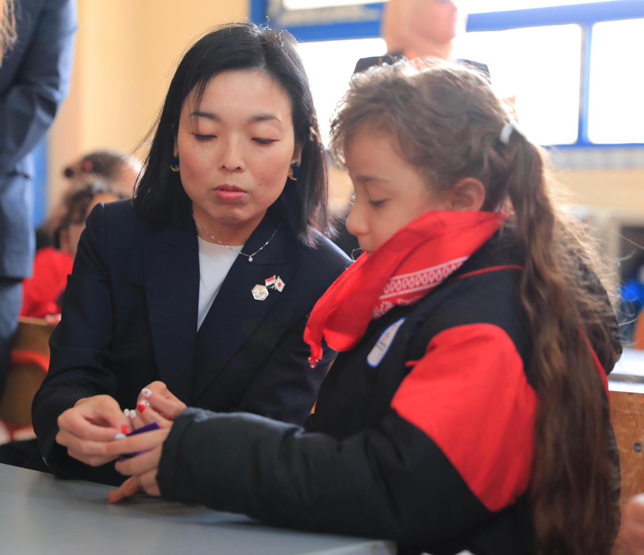 وخلال زيارتها لأحد الفصول، حرصت سمو الأميرة أكيكو والسيد الوزير محمد عبد اللطيف على تبادل الحديث مع الطلاب، كما تابعا أنشطة "التوكاتسو" داخل أحد فصول الصف الثاني الابتدائي، حيث شهدا تطبيق الأطفال لمهارات التعاون والعمل الجماعي في بيئة تعليمية محفزة.