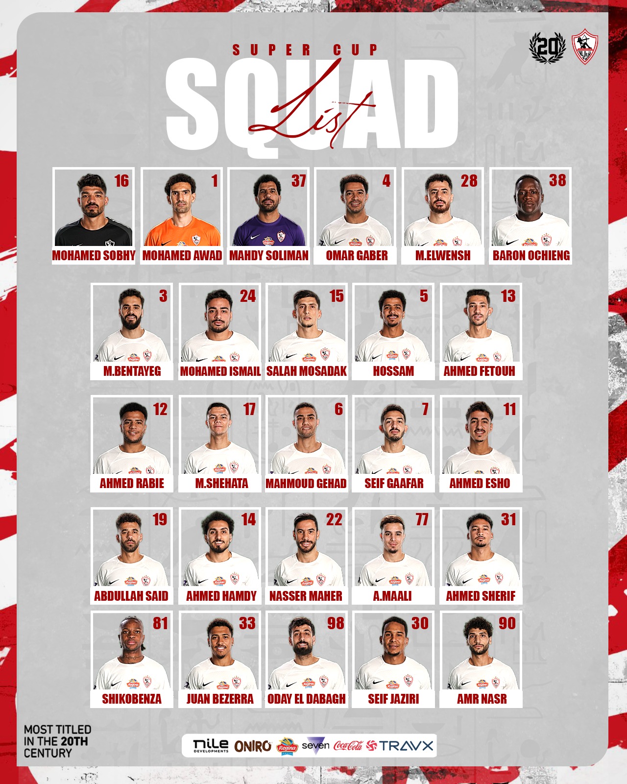 وجاءت قائمة الزمالك كالتالي: