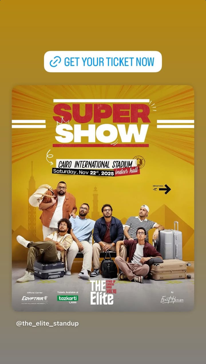 وأضاف" اخيرا وصل السوبر شو أكبر عرض ستاند أب كوميدي في السنة في أستاد القاهرة الدولي..22 نوفمبر استاد القاهرة الدولي الصالة المغطاة"