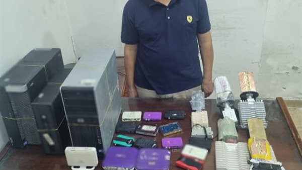 وعقب تقنين الإجراءات، تم ضبط المتهم وبحوزته عدد من الأجهزة والمستلزمات المستخدمة في استقبال ومعالجة الإشارة، بالإضافة إلى (3 وحدات معالجة مركزية – 6 محطات لتقوية إشارة البث اللاسلكي).