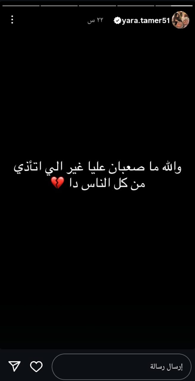 ونشرت يارا تامر طليقة مسلم عبر صفحتها الشخصية بموقع تبادل الصور والفيديوهات القصيرة انسجرام ، قائلة: "والله ما صعبان عليا غير اللي اتأذى من الدنيا كلها".