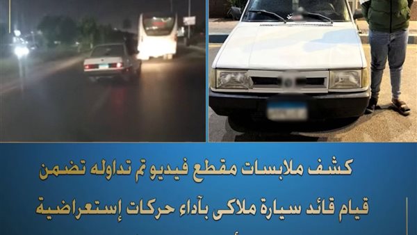 بالفحص والتحريات، تم تحديد وضبط السيارة الظاهرة في المقطع، وتبين أنها سارية التراخيص، ويقودها طالب – مقيم بدائرة قسم شرطة ثان العاشر من رمضان – ويحمل رخصة قيادة.