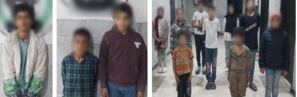 وبصحبتهم (15 حدثاً) من المعرضين للخطر حال قيامهم ببيع السلع بشكل إلحاحي والتسول، وبمواجهتهم أقروا بنشاطهم الإجرامي في استغلال الأطفال لتحقيق مكاسب مادية بطرق غير مشروعة.
