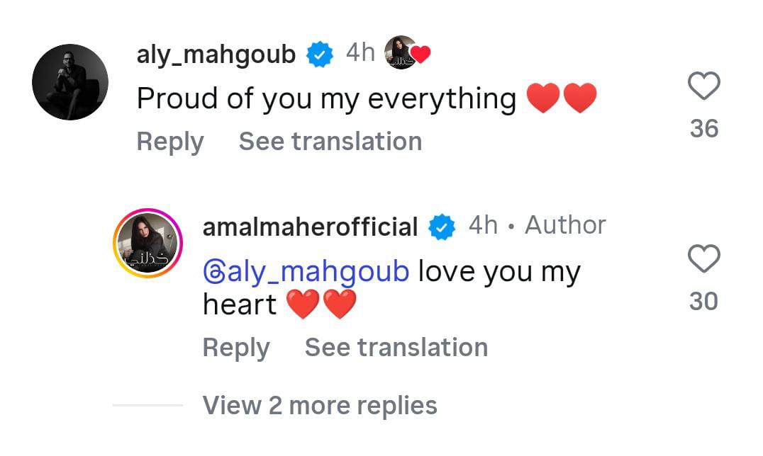 حيث نشرت الفنانة آمال ماهر، صور جلسة تصوير لها علي حسابها الرسمي بموقع “انستجرام”، وعلق زوجها قائلًا: “فخور بكِ يا كل شيء بالنسبة لي”، لترد عليه آمال ماهر مؤكدة: “قلبي.. أحبك.”