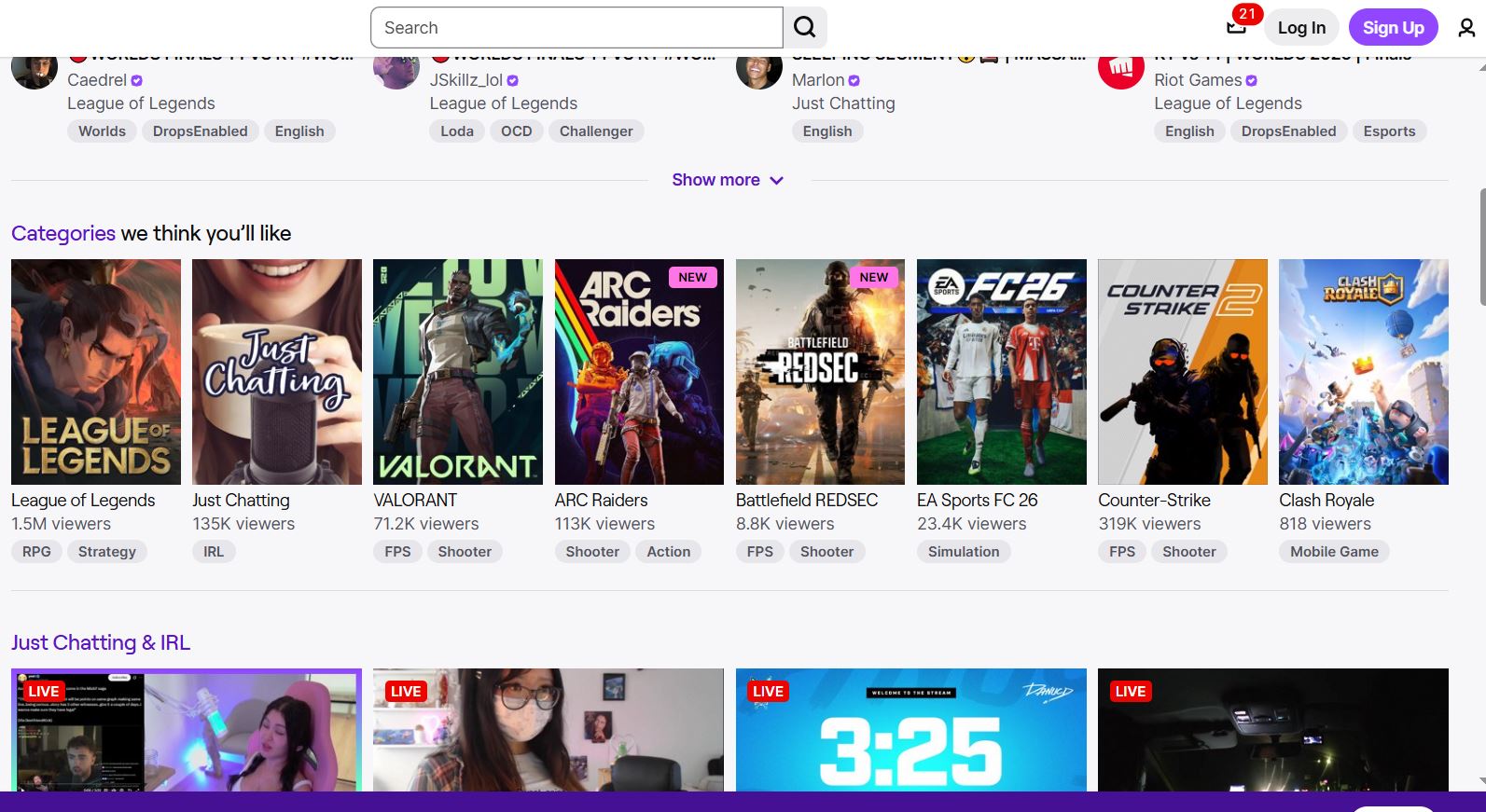 ابدأ في متابعة القنوات والمحتوى المفضل: استكشف الألعاب والبث المباشر وتفاعل مع المجتمعات الخاصة بالمحتوى الذي يهمك.