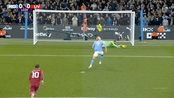 وأسفر قرار حكم الفيديو المساعد عن احتساب ركلة جزاء لصالح مانشستر سيتي في الدقيقة 13، تقدم لتسديدها النجم النرويجي إيرلينج هالاند.
