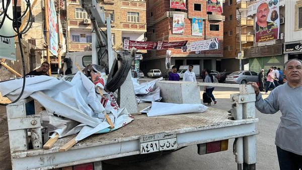 إزالة لافتات الدعاية من أمام لجان الانتخابات في نجع حمادي