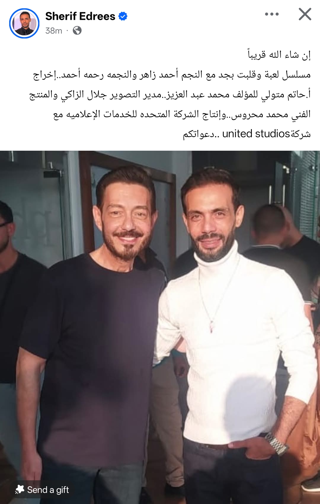 ونشر شريف إدريس صورة تجمعه بـ أحمد زاهر، وذلك من خلال حسابه الرسمي عبر موقع التواصل الاجتماعي فيسبوك، وعلق: إن شاء الله قريباً.. مسلسل لعبة وقلبت بجد مع النجم أحمد زاهر والنجمه رحمه أحمد.