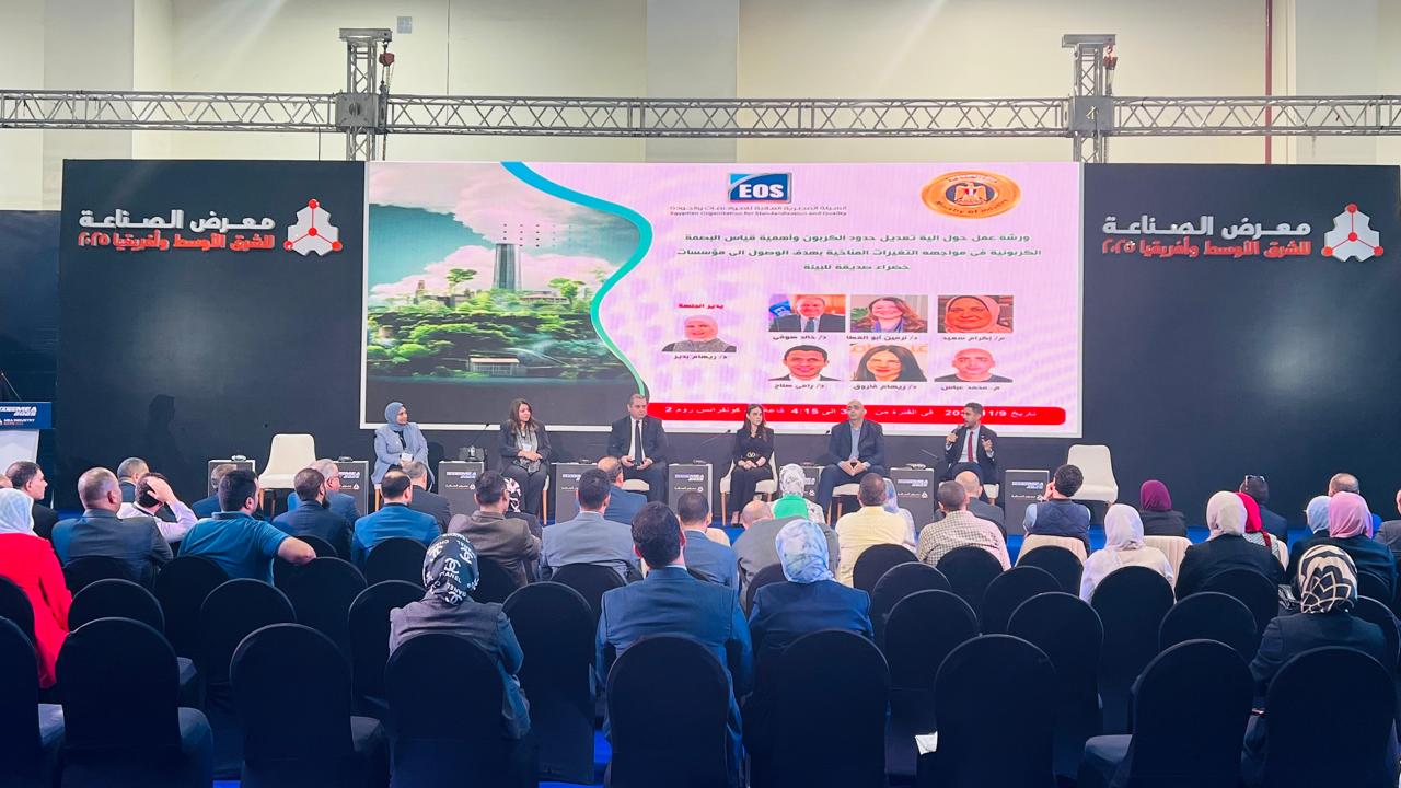 على هامش فعاليات معرض الصناعة MEA Industry، نظّمت الهيئة المصرية العامة للمواصفات والجودة ندوة توعوية بعنوان "آلية تعديل حدود الكربون وأهمية قياس البصمة الكربونية في مواجهة التغيرات المناخية بهدف الوصول إلى مؤسسات خضراء صديقة للبيئة"، بحضور الدكتور خالد صوفي، رئيس الهيئة المصرية العامة للمواصفات والجودة ورئيس منظمة الأيزو العالمية (ISO)، والدكتورة نرمين أبو العطا، مستشار وزير الصناعة للتنمية المستدامة، والمهندس رامي صالح، الرئيس التنفيذي لتطوير الأعمال والاستدامة بشركة المراكبي للصلب، والمهندس محمد الليثي، مدير العمليات بشركة السويدي للأسمنت، والمهندسة إكرام سعيد، رئيس وحدة الاداء البيئي بالهيئة المصرية العامة للمواصفات والجودة، والدكتور ريهام فاروق، الأمين العام لمؤسسة حماة الأرض.