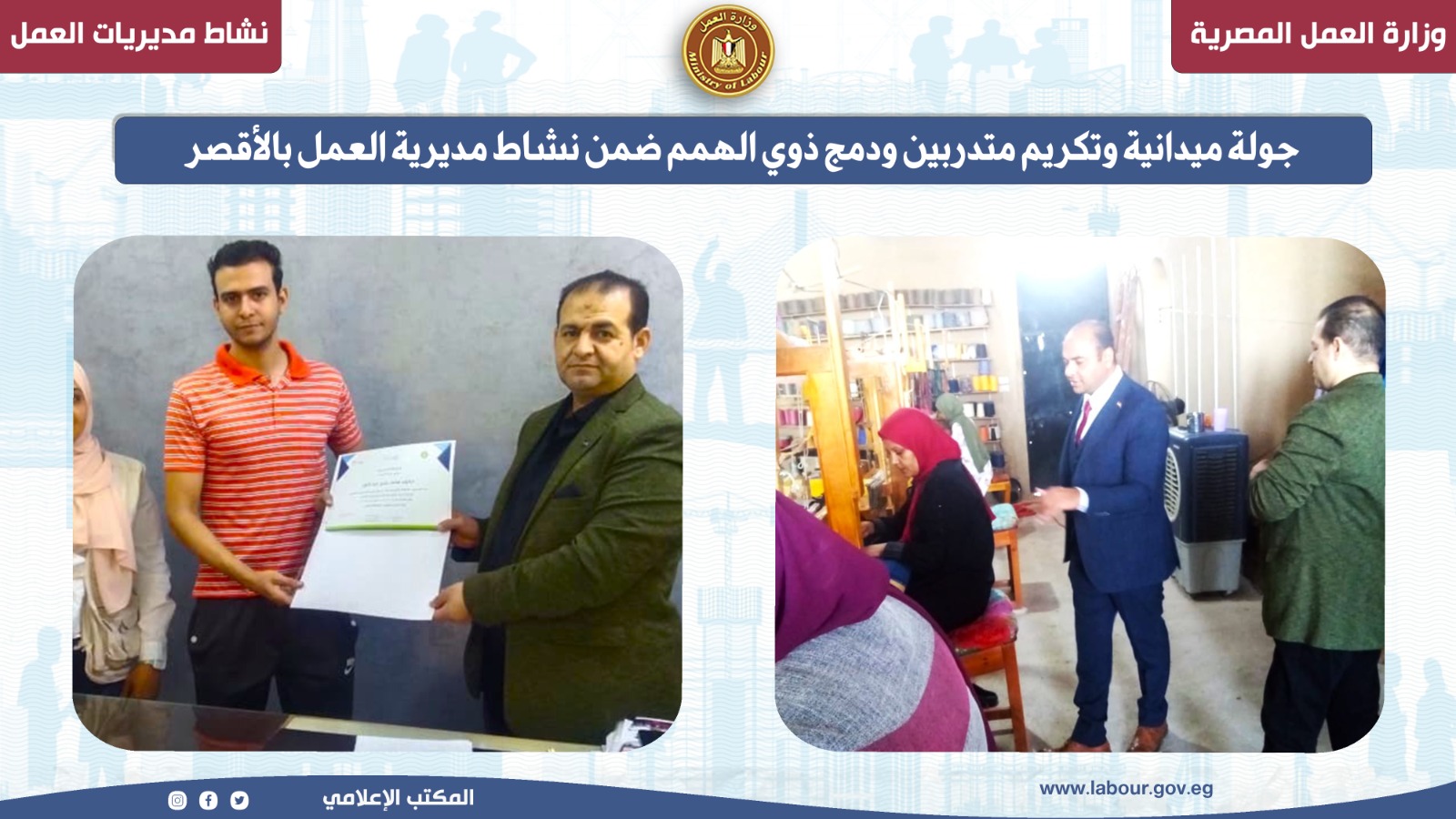 4-جولة ميدانية وتكريم متدربين ودمج ذوي الهمم ضمن نشاط مديرية العمل بالأقصر