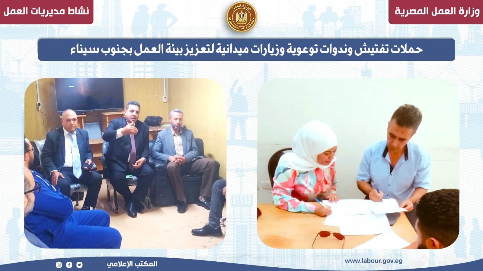 6-حملات تفتيش وندوات توعوية وزيارات ميدانية لتعزيز بيئة العمل بجنوب سيناء