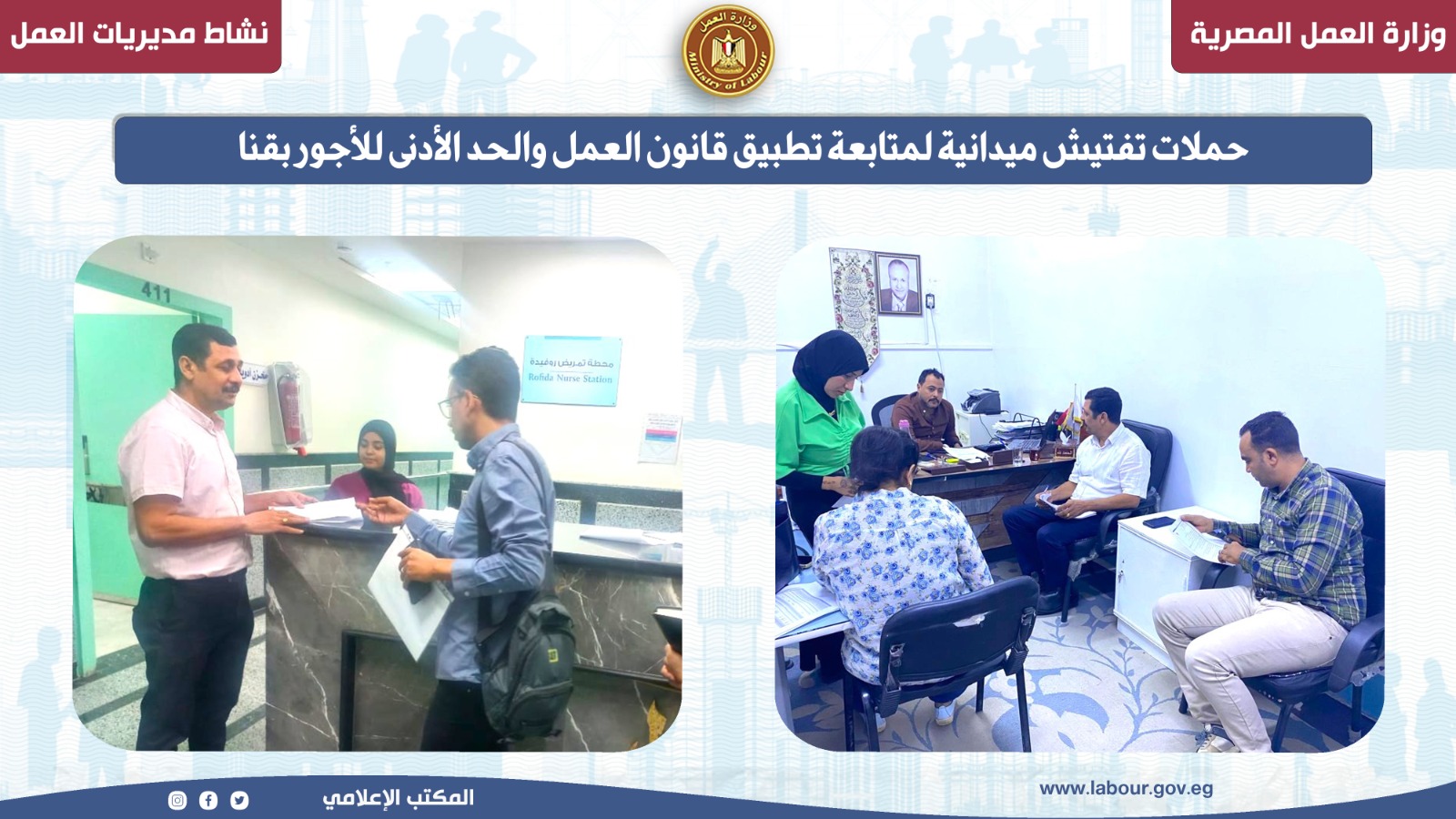 5-حملات تفتيش ميدانية لمتابعة تطبيق قانون العمل والحد الأدنى للأجور بقنا