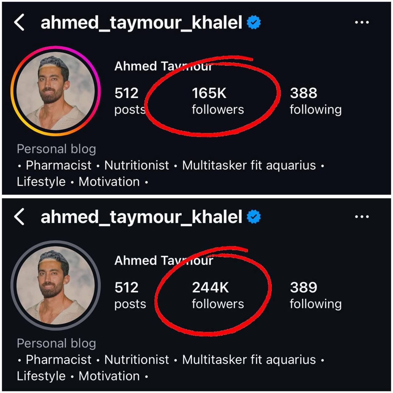 أحمد تايمور صيدلي وخبير تغذية معروف، يمتلك خبرة واسعة في تقديم النصائح المتعلقة بالتغذية الصحية ونمط الحياة السليم، ويحرص على مشاركة محتوى تثقيفي لجمهوره عبر حسابه الشخصي على موقع “إنستجرام” قبل الإعلان عن زواجه، كان يمتلك نحو 140 ألف متابع، لكن الحدث الأخير جعل الرقم يتضاعف بشكل ملحوظ.