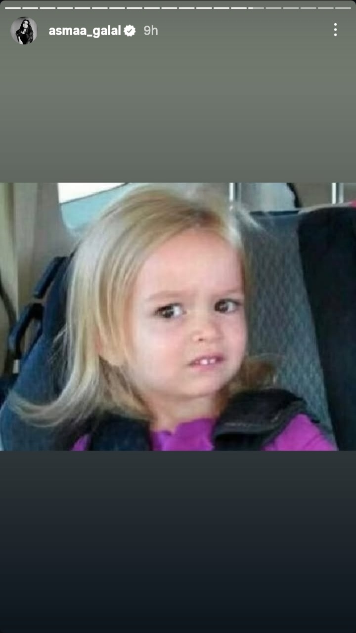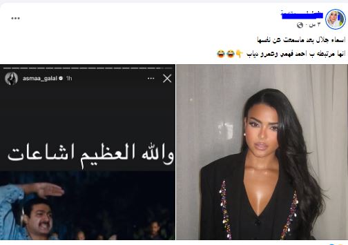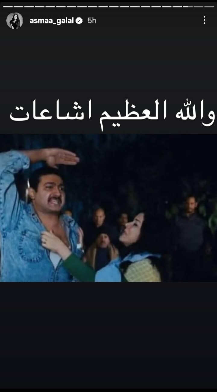 من جانبها علقت الفنانة أسماء جلال على هذه الشائعات التي انتشرت مؤخرآ بطريقة طريفة عبر خاصية الاستوري عن طريق كوميك للنجم ياسر جلال من فيلم "الفرح"، حيث جاءت الصورة مصحوبة بتعليق: "والله العظيم إشاعات".