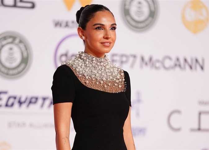 بينما ظهرت هاجر الشرنوبي بفستان ذهبي لامع مزين بعقد يحمل رمز مفتاح الحياة الفرعوني، ما منح إطلالتها طابعًا ملكيًا، تركت شعرها منسدلًا على ظهرها مع لمسة كلاسيكية من الأمام، لتبدو كإحدى ملكات الفراعنة.