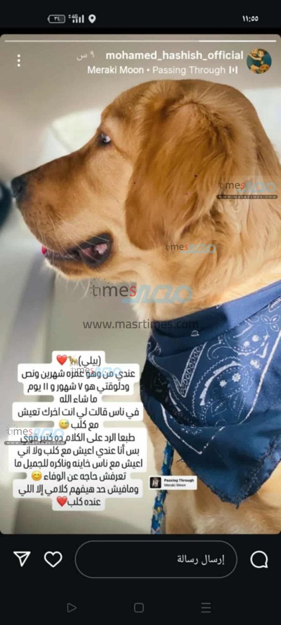 وكتب الزوج على حسابه: "بيلي.. عندي وهو عمره شهرين ونص ودلوقتي هو 7 شهور و11يوم ماشاء الله