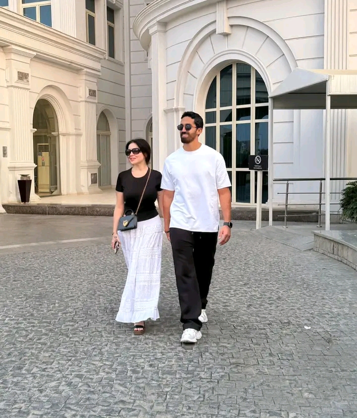 خطفت الفنانة مي عز الدين وزوجها رجل الاعمال أحمد تيمور خليل، الأنظار في أحدث ظهور لهما من شهر العسل.