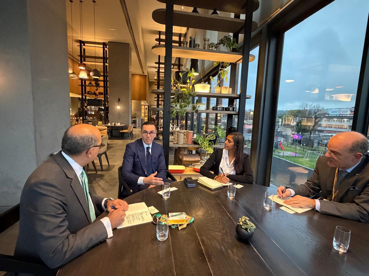 التقى المهندس حسن الخطيب، وزير الاستثمار والتجارة الخارجية، السيد قاهر دهناني، المدير التنفيذى والشريك بشركة BCG – Boston Consulting Group بواشنطن ، وذلك لبحث فرص التعاون الاستثماري وتبادل الخبرات لدعم استراتيجية الدولة للنمو الاقتصادي وتحفيز القطاعات الواعدة، وذلك في إطار زيارة وزير الاستثمار والتجارة الخارجية الحالية لدولة جنوب أفريقيا.