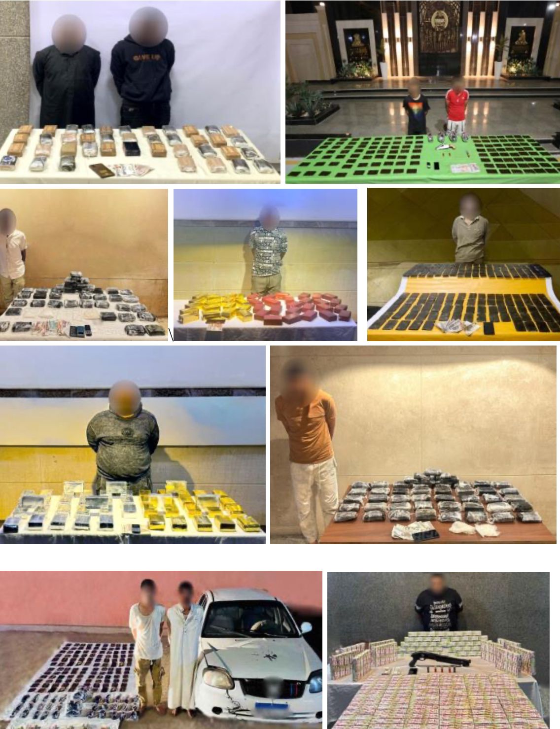 أكدت معلومات وتحريات قطاعي الأمن العام ومكافحة المخدرات والأسلحة والذخائر غير المرخصة، بالتنسيق مع أجهزة الوزارة المعنية، قيام عدد من البؤر الإجرامية في عدة محافظات بجلب كميات كبيرة من المواد المخدرة والأسلحة النارية بغرض الاتجار بها. وقد تبين أن تلك البؤر تضم عناصر جنائية شديدة الخطورة صادرة ضدهم أحكام مشددة في قضايا «مخدرات – سلاح – سرقة بالإكراه – حريق عمد».