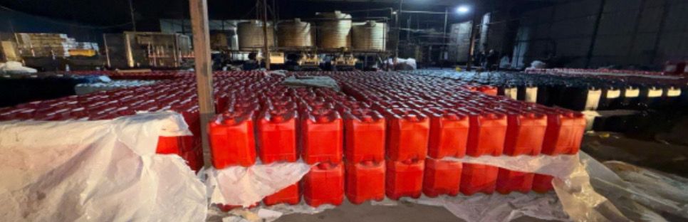 • 25 طنًا من الزيوت النهائية المعاد تعبئتها تحت أسماء شركات وهمية مستخدمًا علامات تجارية غير مسجلة،