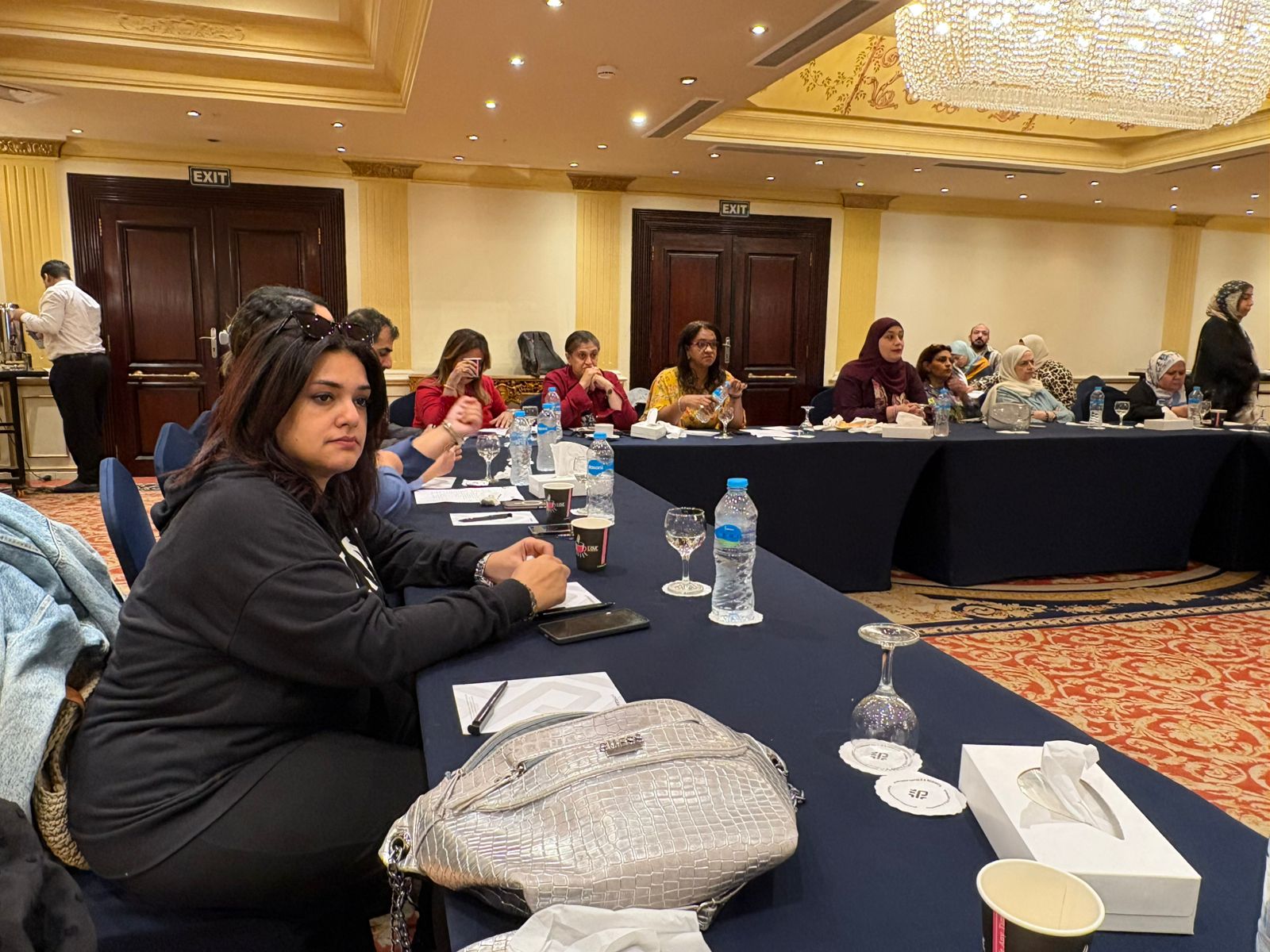 بجانب هالة عاهد المحامية وعضو اتحاد المرأة الأردنية ، ديما خشان المحامية وعضو الهيئة العامة بنقابة المحامين بفلسطين، عذراء الرفاعي محامية وعضو الجمعية الوطنية لحماية الطفل بالكويت،