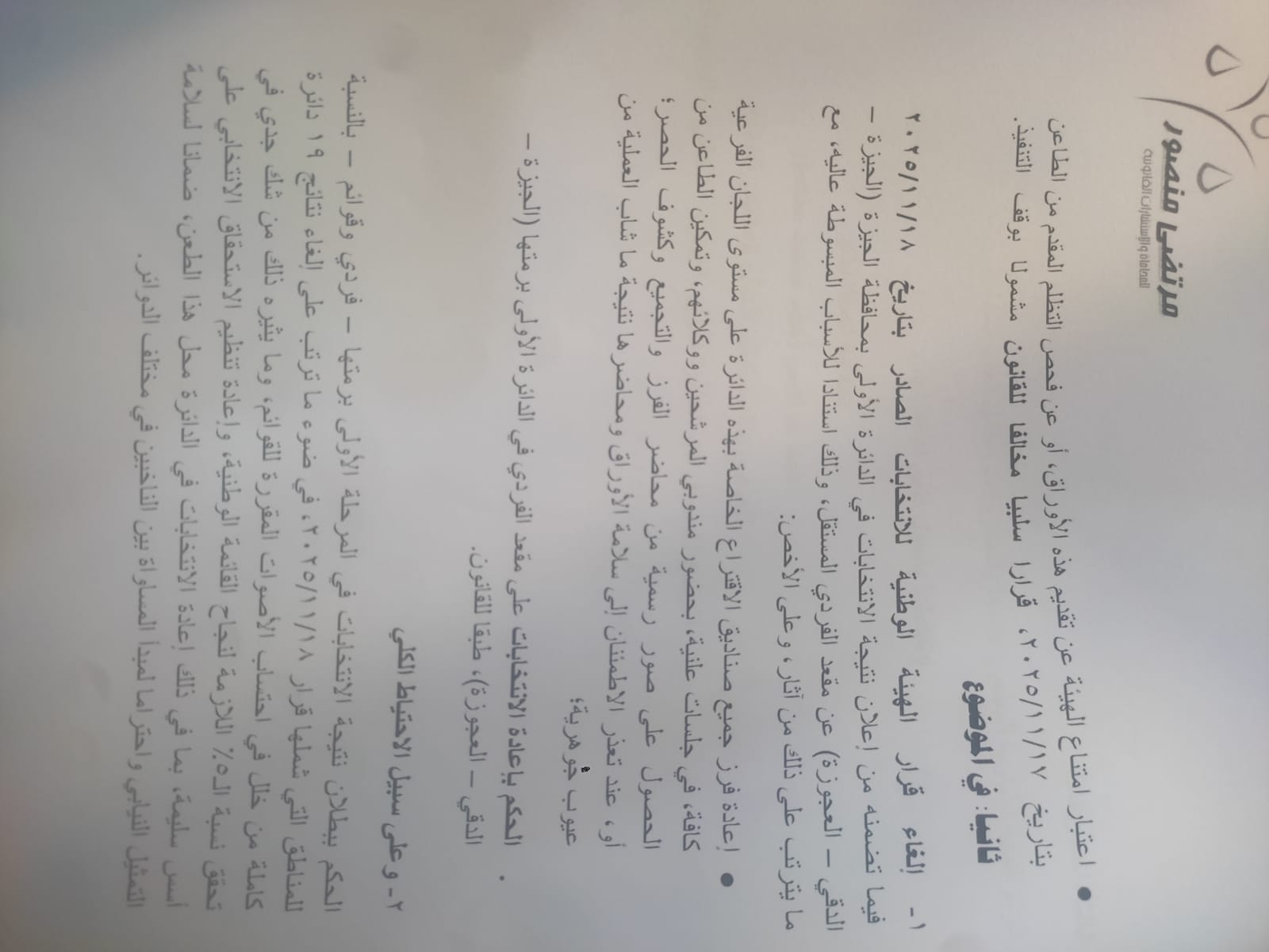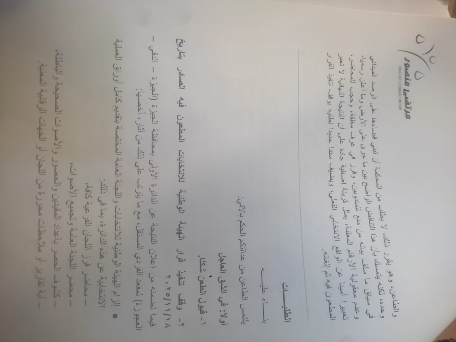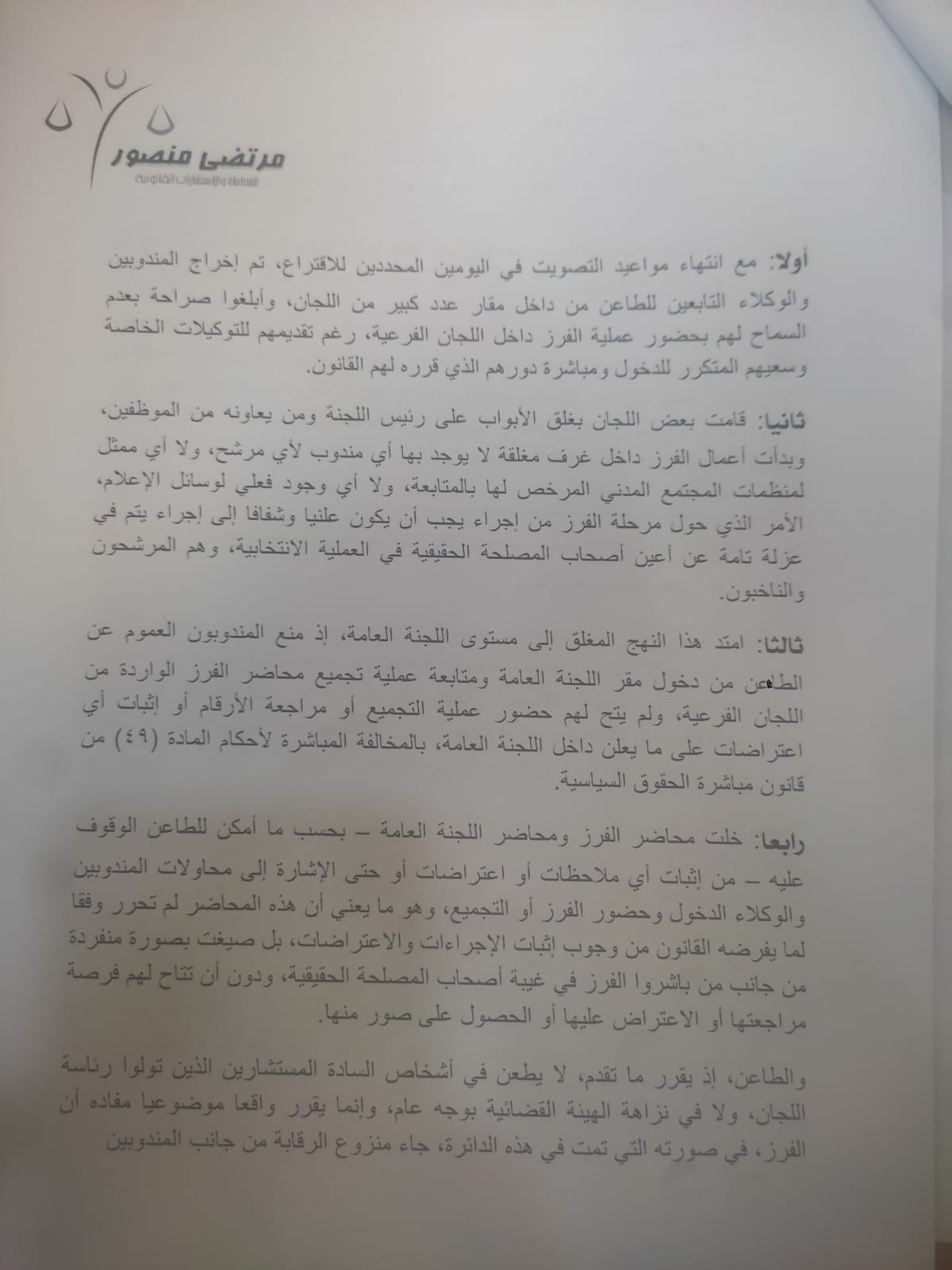 ويطالب الطعن بمراجعة النتائج واتخاذ الإجراءات القانونية اللازمة، بما في ذلك إعادة الفرز أو إعادة الانتخابات في حال ثبوت مخالفات جوهرية أثرت على نزاهة العملية الانتخابية.