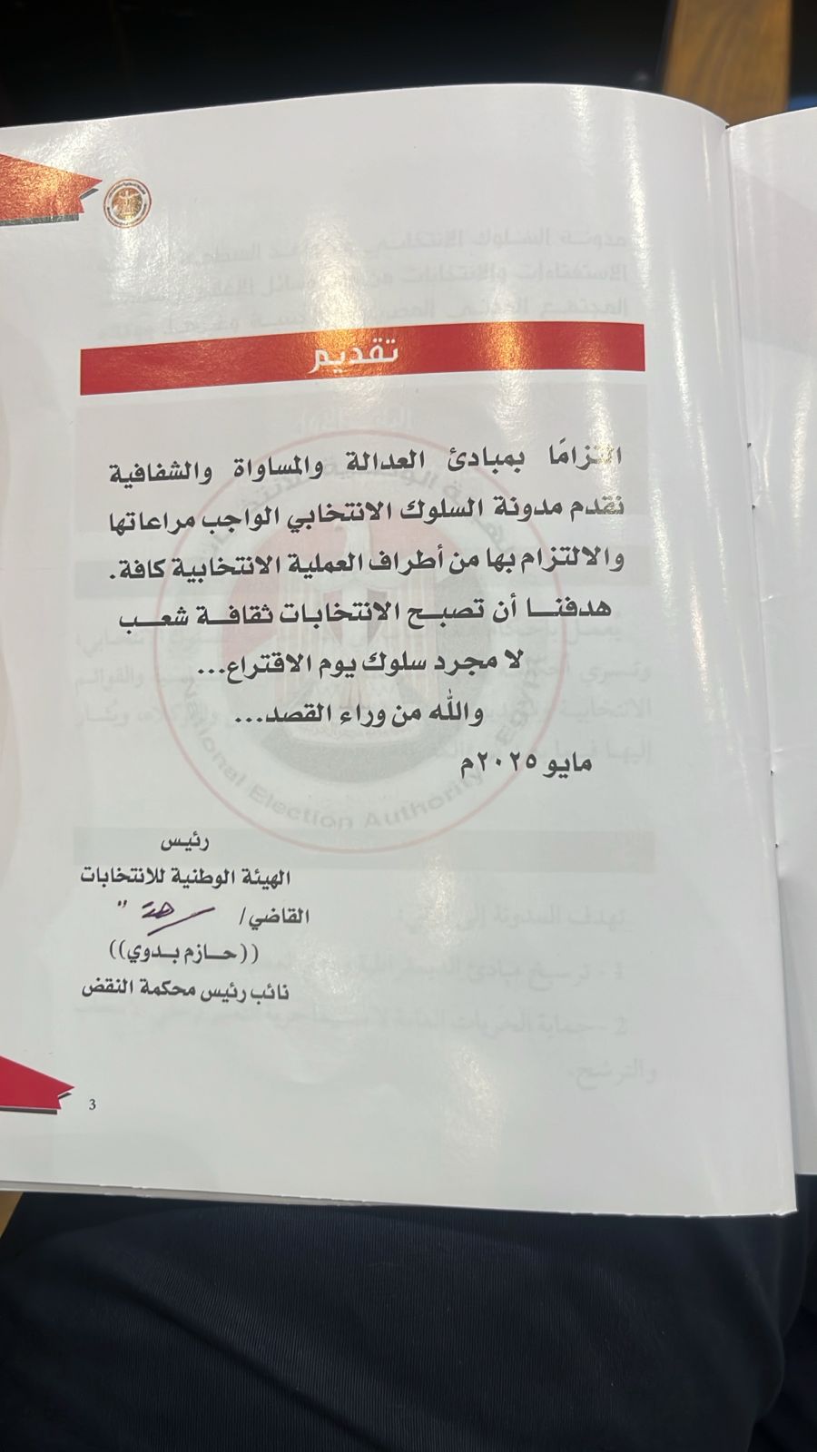 الهيئة الوطنية للانتخابات تصدر مدونة السلوك الانتخابي لضمان نزاهة المنافسة البرلمانية| صور