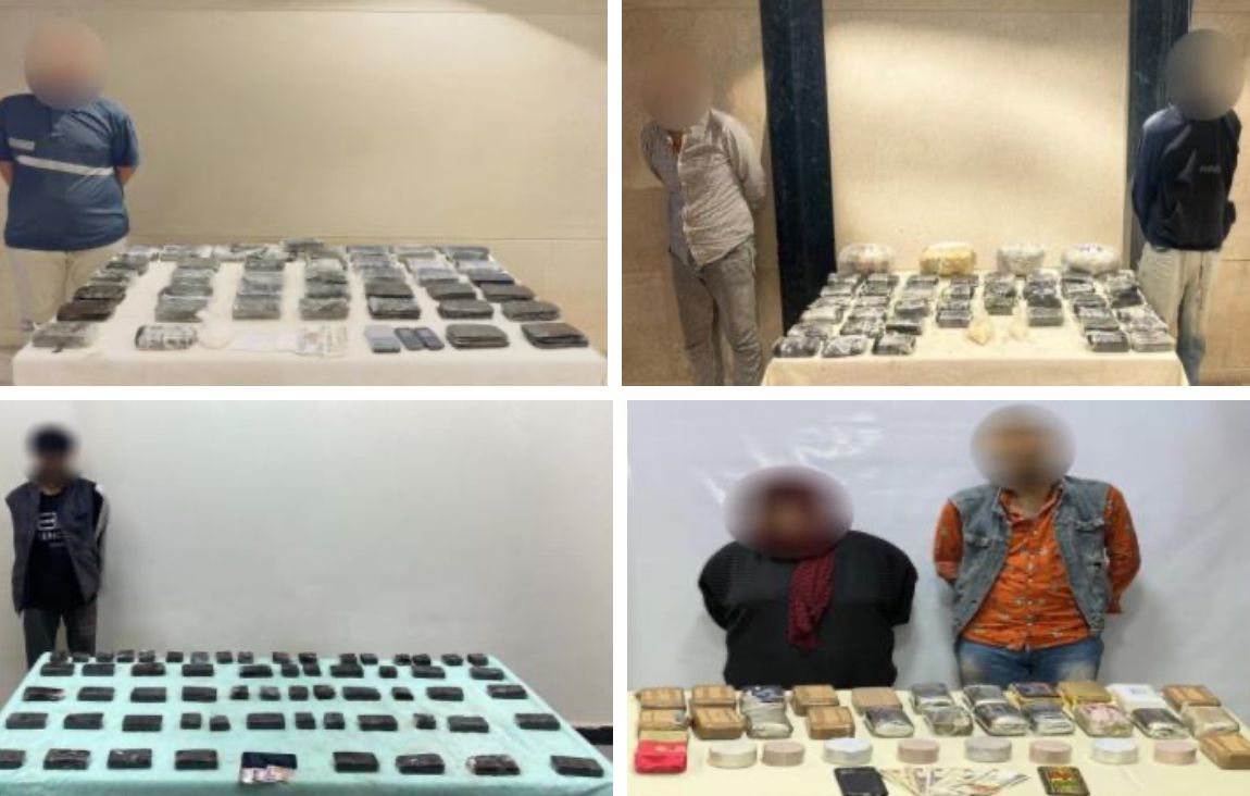 أكثر من 414 كيلو جرامًا من المخدرات المتنوعة: حشيش، هيدرو، شابو، أفيون، هيروين، شادو، بودرة حشيش اصطناعي.