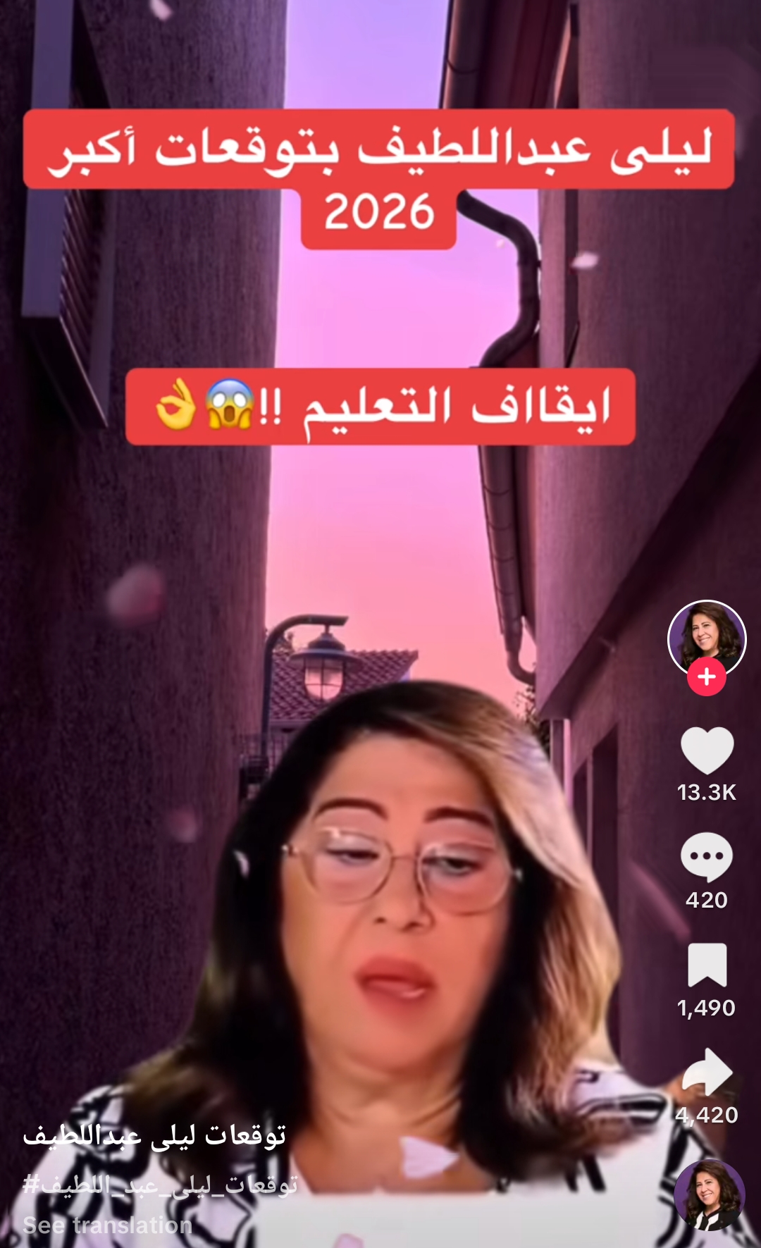 وقالت ليلى عبد اللطيف خلال الفيديو، الذي انتشر عبر الموقع العالمي الشهير تيك توك: سيتم إيقاف التعليم في عدة مدارس وجامعات بالعالم، وذلك بسبب حصول حدث مؤسف وكبير بيتعلق بانتشار وباء جديد وخطير غير كورونا وغير الفيروسات التي حكوا عنا.