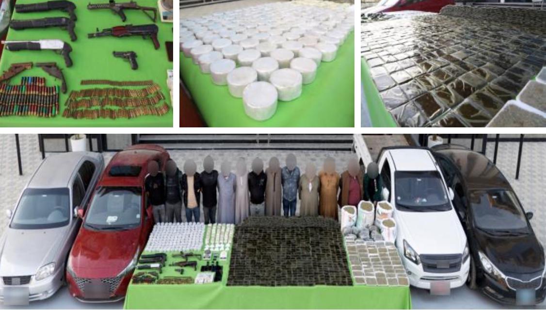 • قرابة 374 كيلو جرام من المواد المخدرة المتنوعة (هيدرو، حشيش، هيروين، شابو، كوكايين، أفيون).