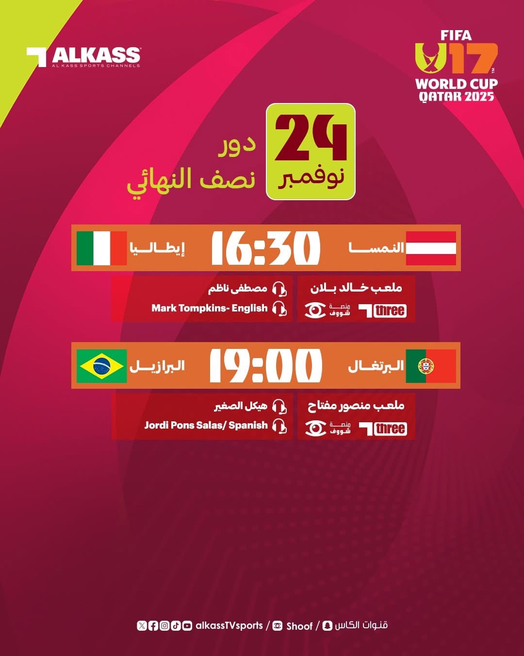 واليوم، يحمل نصف النهائي نكهة أوروبية لاتينية خالصة؛ إذ يلتقي النمسا وإيطاليا في مواجهة تكتيكية خالصة عند الثالثة والنصف عصرًا، تليها قمة واعدة بين البرازيل والبرتغال في السادسة مساء، في صراع مهاري ينتظره عشاق كرة القدم حول العالم.
