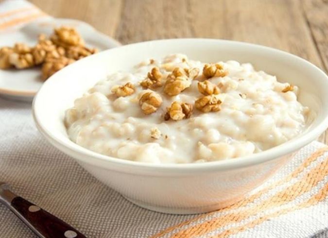 - أضف السكر والقرفة ثم اللبن أو الزبادي وقم بتزيين الأطباق المكسرات وتقدم.