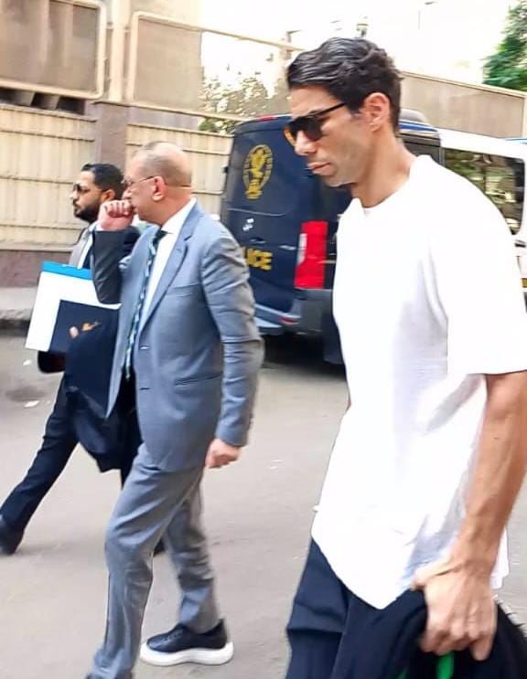 وفي الوقت ذاته، وصل رمضان صبحي وثلاثة متهمين آخرين داخل سيارة الترحيلات إلى مقر المحكمة، لاستكمال إجراءات محاكمتهم في القضية المتهمين فيها بتزوير محررات رسمية بأحد معاهد السياحة والفنادق بمنطقة أبو النمرس بمحافظة الجيزة.