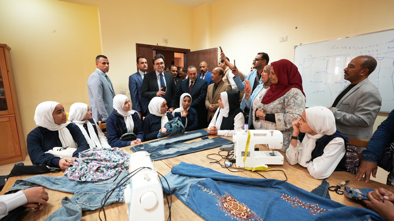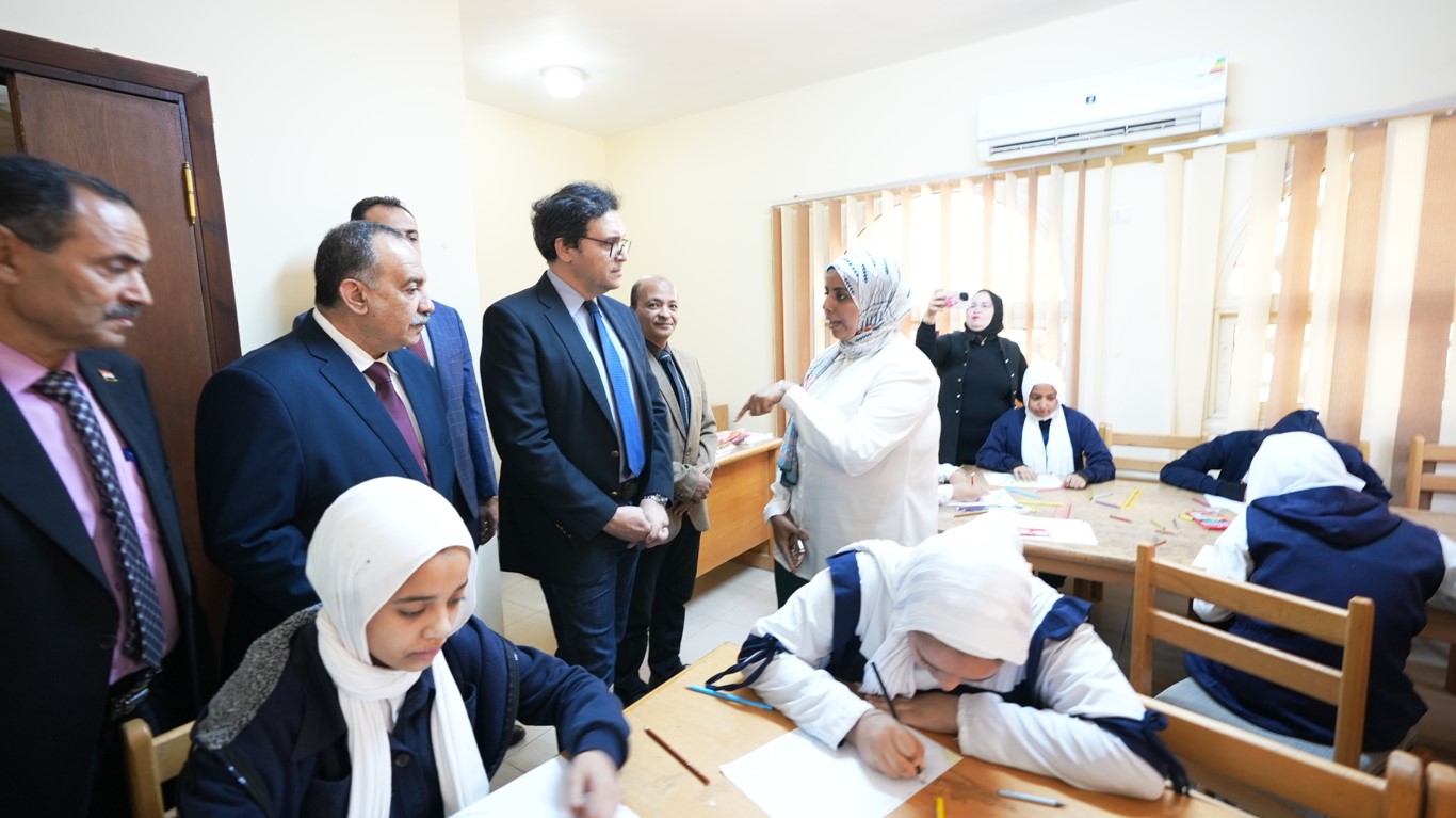وبدأت الجولة بتفقد معرض منتجات ورش الفنون التشكيلية الذي يضم نماذج من المشغولات اليدوية والأعمال الفنية التي أنتجتها ورش القصر، كما تابع المحافظ والوزير ورشة حكي للأطفال حول المتحف المصري الكبير داخل مكتبة الطفل، إلى جانب زيارة ورشة التفصيل والخياطة بقاعة نشاط المرأة.