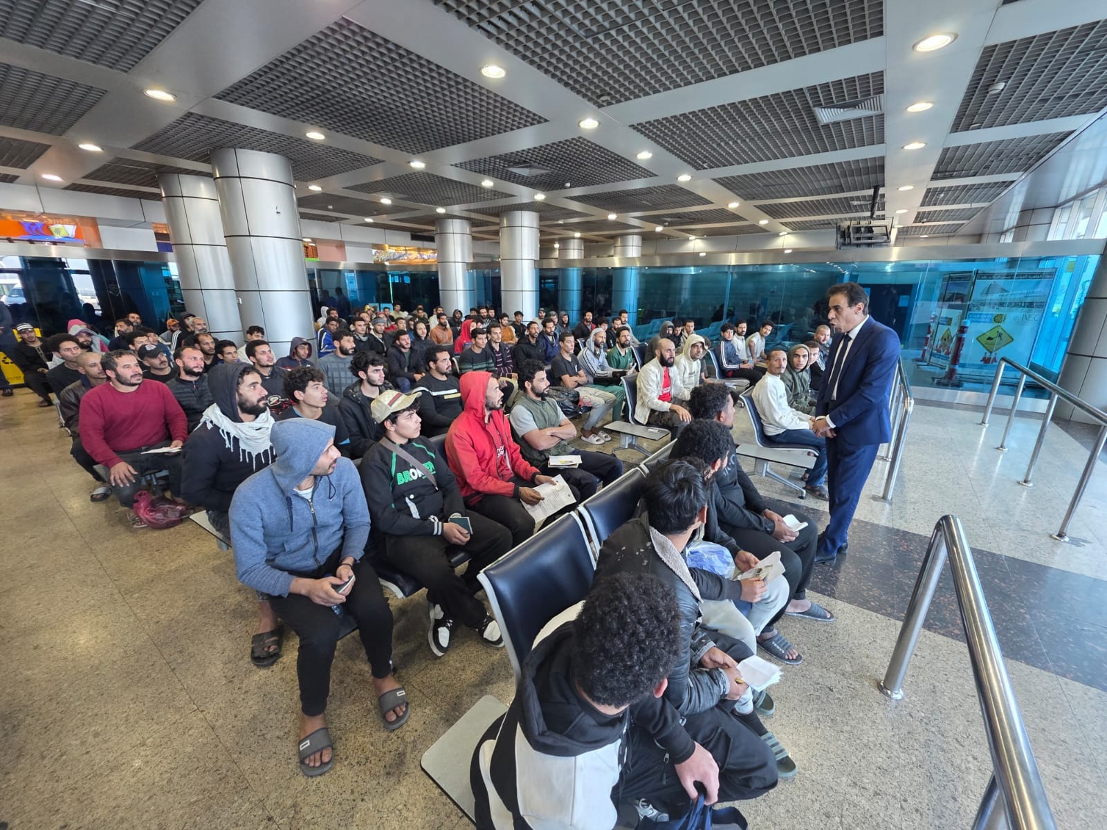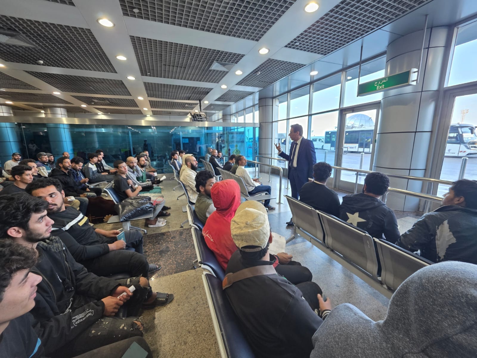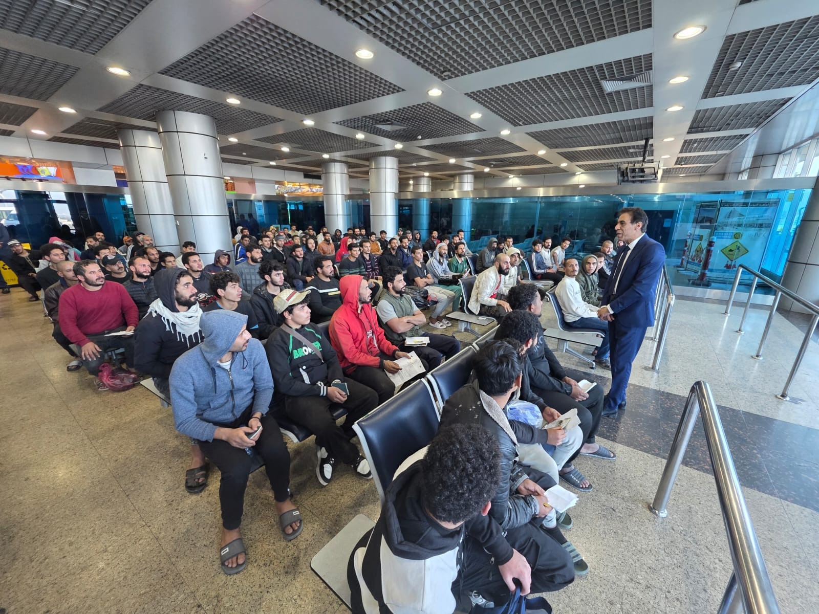 في إطار توجيهات د. بدر عبد العاطي وزير الخارجية والهجرة وشئون المصريين بالخارج بإعطاء أولوية خاصة وبذل الجهود لاستعادة المواطنين المحتجزين في الخارج، استقبل السفير حداد عبد التواب الجوهري مساعد وزير الخارجية للشئون القنصلية، رحلة قادمة من طرابلس على متنها 131 مصري، في اعقاب جهود حثيثة ومتواصلة بذلتها السفارة المصرية في طرابلس مع الجهات الليبية المختصة بالتنسيق مع القطاعات بوزارة الخارجية المعنية في إطلاق سراحهم وتسهيل عودتهم إلى أرض الوطن.