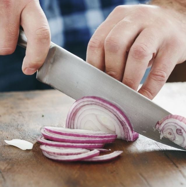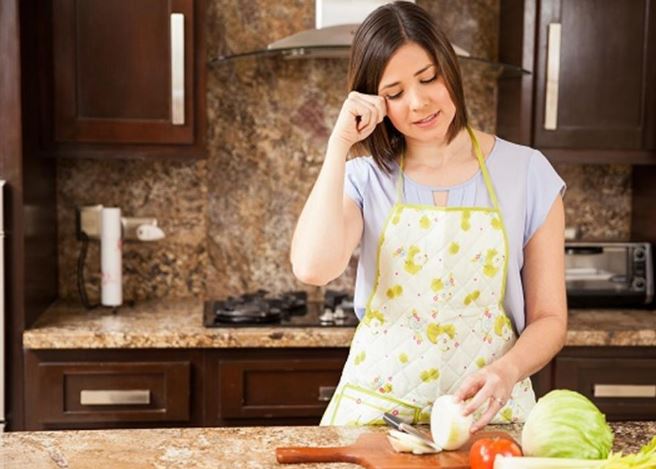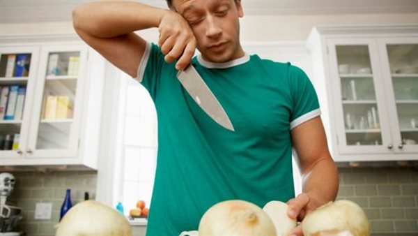 تقطيع البصل في إناء به ماء، أو تحت المياه الجارية، يساعد على تجنب الشعور بحرق العينين.