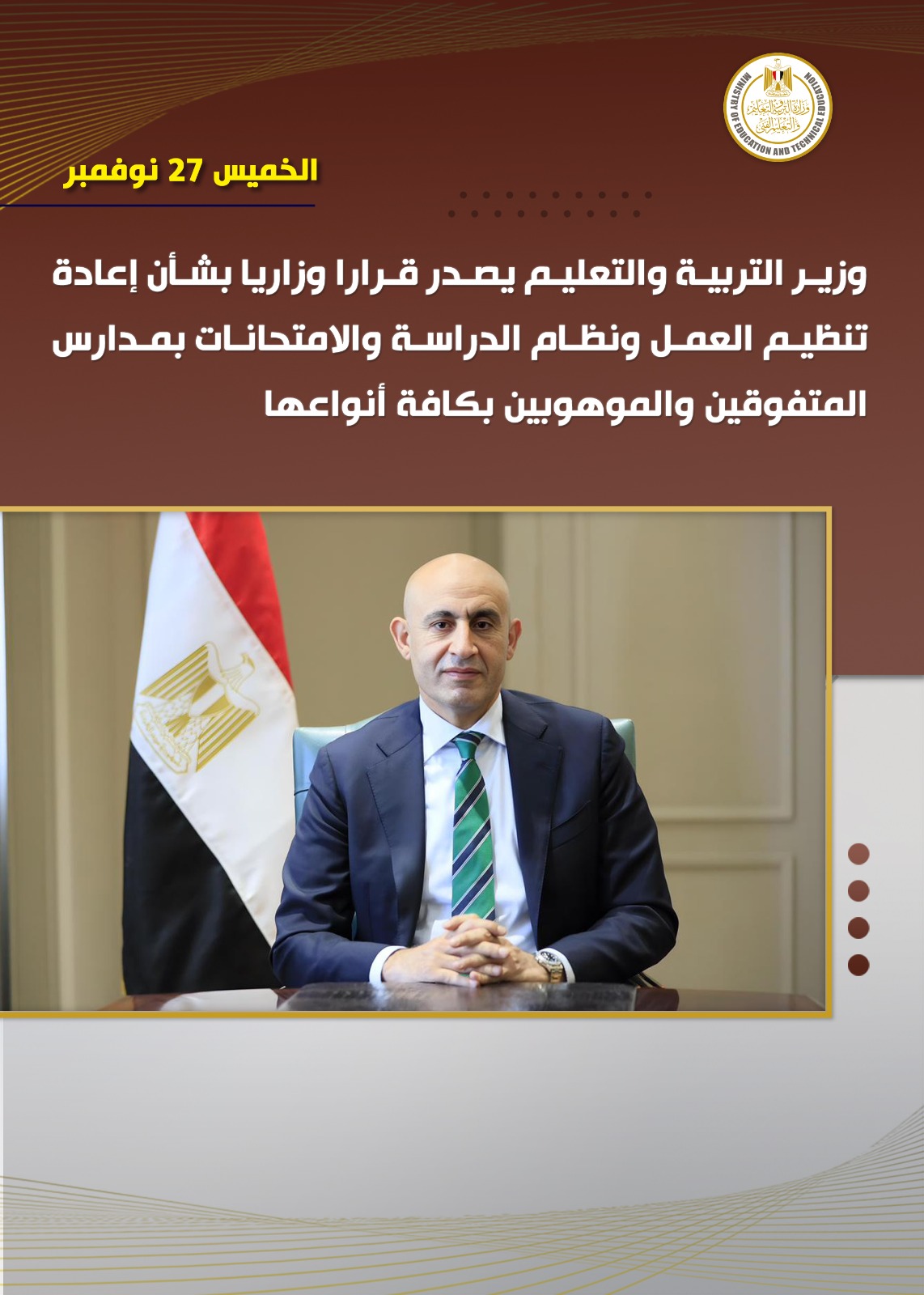 الخميس ٢٧ نوفمبر ٢٠٢٥ — قرار تنظيم مدارس المتفوقين