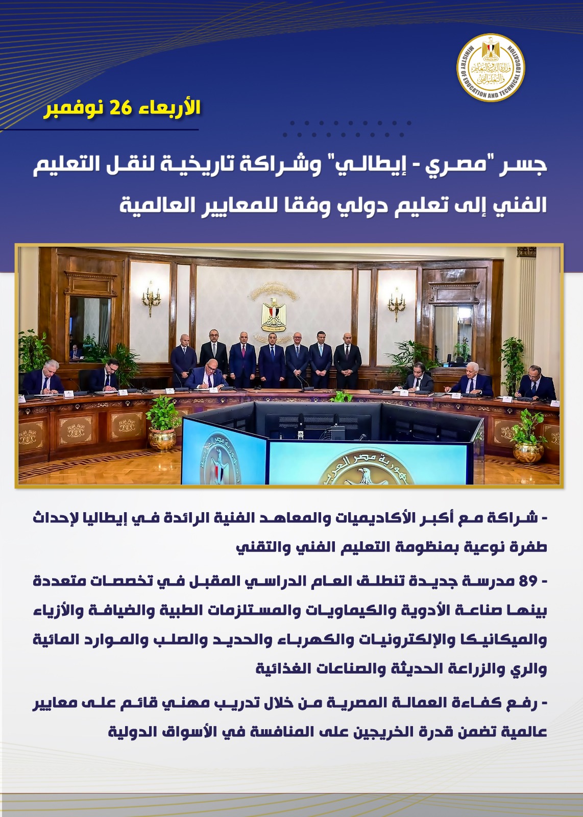 وتؤكد الوزارة أن هذه الخطوة تمثل طفرة نوعية في منظومة التعليم الفني، وتهدف لإعداد كوادر بمهارات عالمية تلبي احتياجات السوق المحلي والدولي.