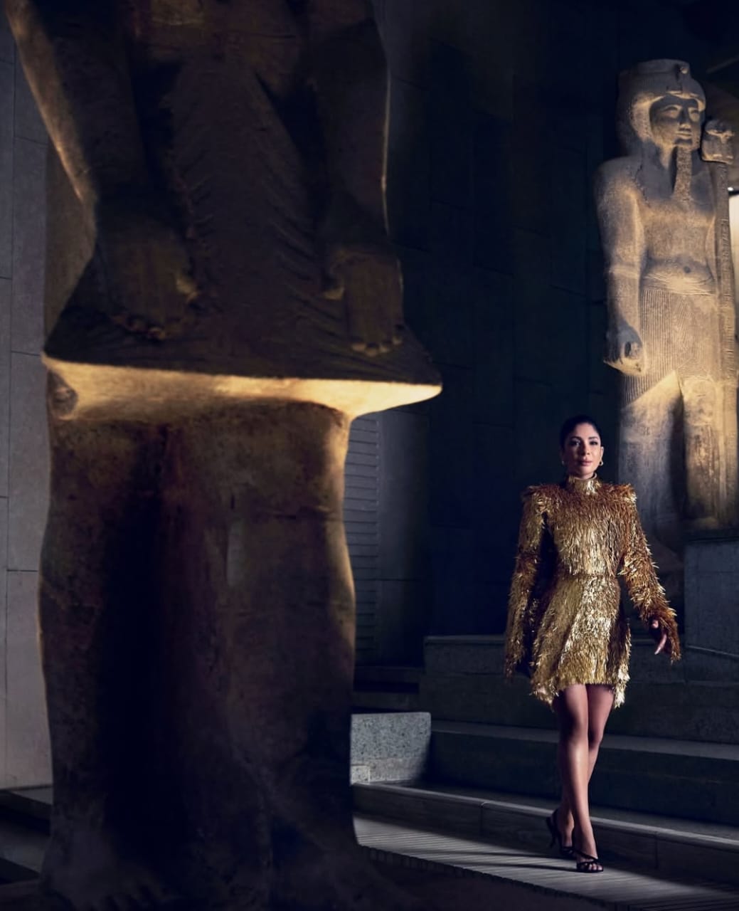 منى زكي تتألق في جلسة تصوير داخل المتحف الكبير استعدادًا لفيلم "الست"| صور