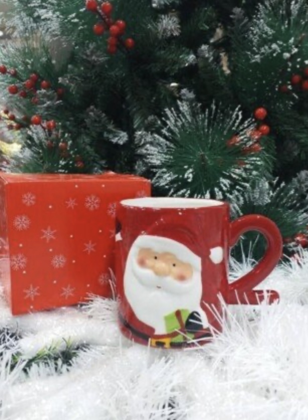 ويأتي المج مزينًا بمجسم أو رسمة لبابا نويل، مما يجعله مناسبًا لتبادل اللحظات الدافئة على كوب من الشوكولاتة الساخنة أو القهوة خلال ليلة رأس السنة.
